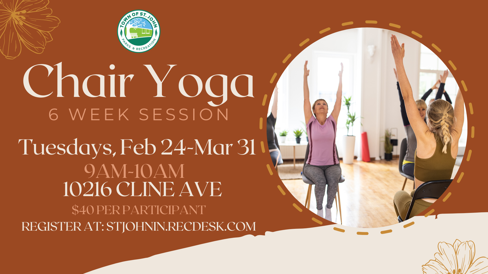 Join us for our 6-Week Chair Yoga Session on Tuesdays,February 24th-March 31st, from 9:00โ10:00 AM at the St. John Community Center (10216 Cline Ave)!