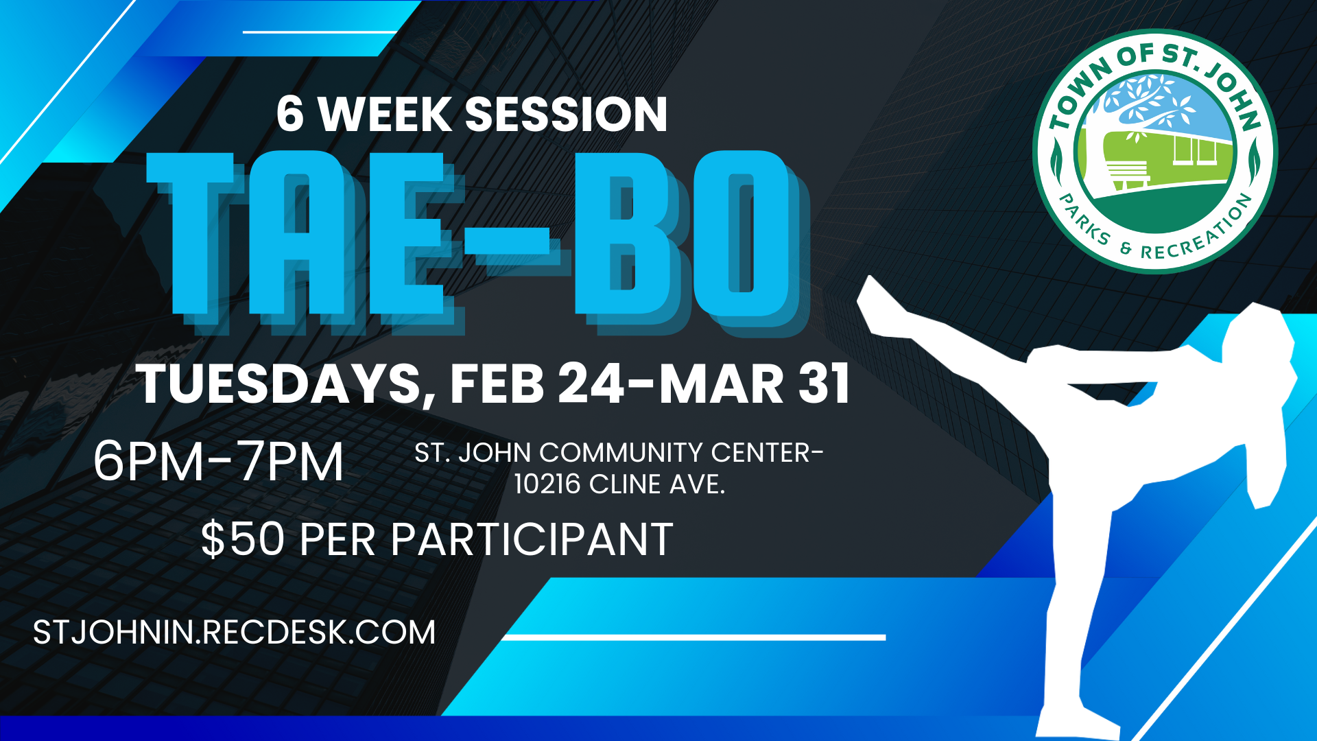 Join us for a fun and energizing 6-week Tae Bo class led by our amazing instructor Christine!