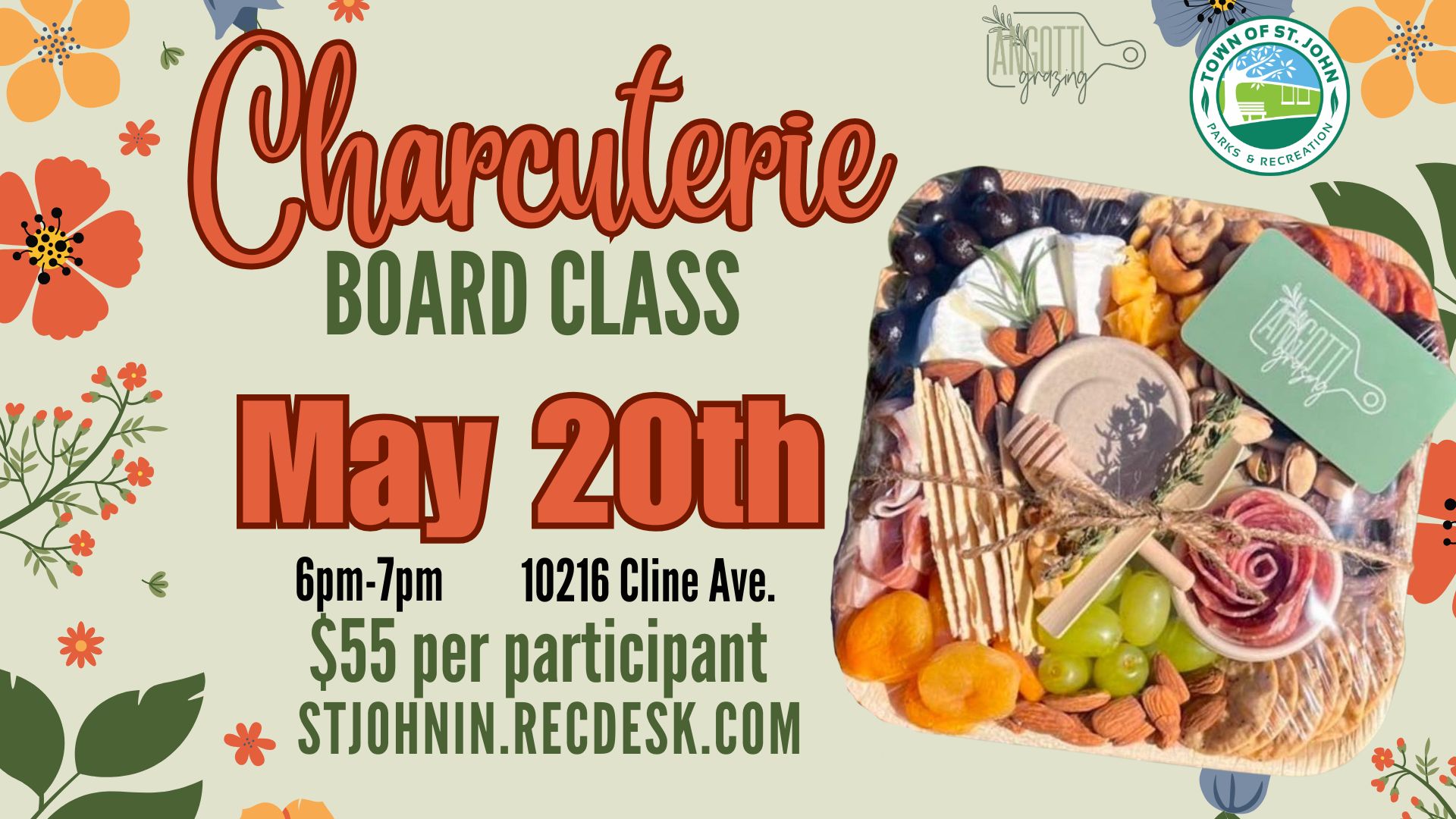 Join us for another Charcuterie Board Class on Wedensday, May 20th from 6:00 PM โ 7:00 PM! Learn how to cut and fold meats and cheeses, design your own beautiful board, and discover the best ingredient pairings.