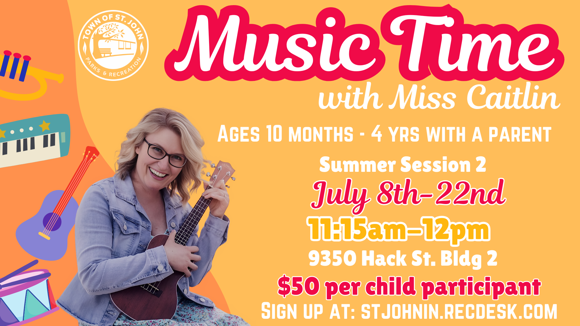 Join Miss Caitlin for a 6-week musical journey, perfect for kids ages 10 months to 4 years and their parents.